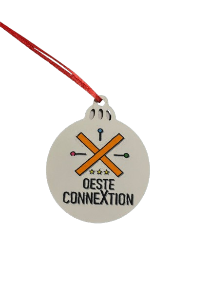 Bola de Natal c/ estampagem alusiva ao Natal. Incluída estampagem traseira c/ símbolo da Oeste ConneXtion.